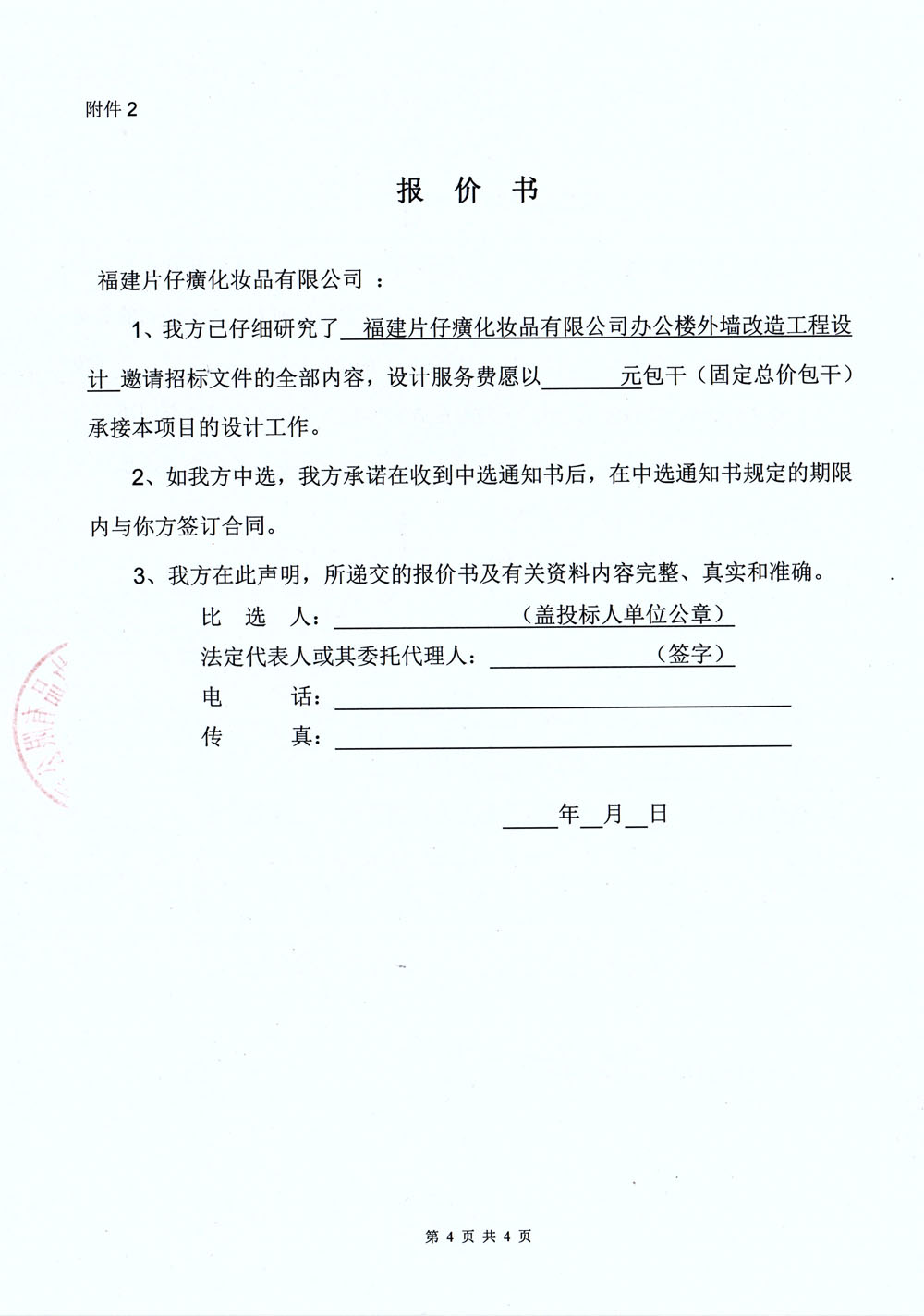 福建片仔癀化妆品有限公司办公楼外墙改造工程设计单位邀请招标文件(第二次招标)
