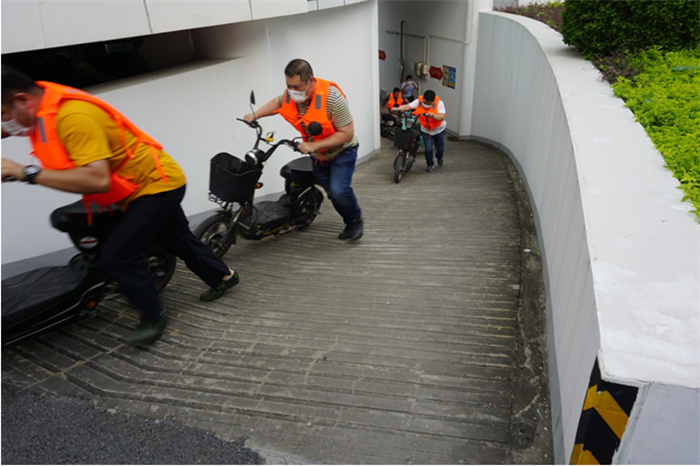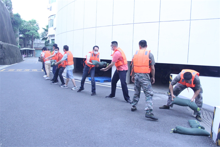本次演练内容主要分为防洪土堤巡堤、搬运防洪沙袋封堵雨水、内涝围挡雨水入车库和转移低洼处物资四个项目,模拟因受台风天气影响,连续暴雨洪水,九龙江水位上升,公司内部也发生内涝,地面大量雨水涌入地下一层车库等为场景,公司接到市九龙江堤管处预报九龙江洪水水位超过警戒水位3米-3.5米和公司出现内涝汛情报告时,公司领导立即启动抗洪抢险应急预案二级响应,组织应急救援抢险队伍上南岸土堤巡查、搬运防洪沙袋堆积封堵、围挡雨水入车库、转移低洼处物资等实战实操防汛抢险应急演练。参演人员行动迅速、分工明确、动作协调、配合默契,正确及时有效地处置了险情。