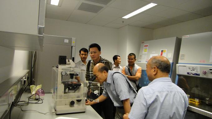 近日,我司领导冯忠铭董事长、潘杰总经理、黄进明副总及香港漳龙公司黄张强总经理等一行到香港中文大学生物医学学院进行参观考察、并进行联合实验室的揭牌仪式及合作项目交流。我司一行首先参观了新落成的罗桂祥综合生物医学大楼,该大楼是参照美国国立卫生研究院的设计和标准建造,设有开放式实验室、研讨室、行政办公室等。该大楼配备了先进的仪器设施,供遗传学、基因组学、蛋白质组学及生物信息学等领域的研究人员,研究人类各种常见疾病的基本原理及发病机理。