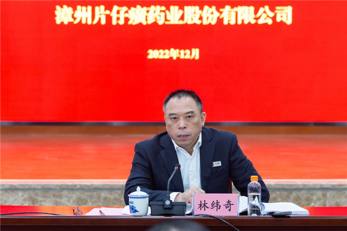 1219日上午,公司党委书记、董事长林纬奇在片仔癀大厦3楼会议室主持召开2023年工作务虚会。公司党委、经营班子成员、副中层以上管理人员、权属子公司经营班子成员参加会议。