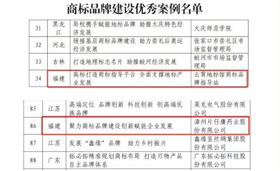 20221230日,国家知识产权局发布了《国家知识产权局办公室关于确定商标品牌建设优秀案例的通知》(国知办函运字[2022] 1065号),经漳州市市场监督管理局的指导推荐,我公司《聚力商标品牌建设  创新赋能企业发展》入选全国企业经营类优秀案例。