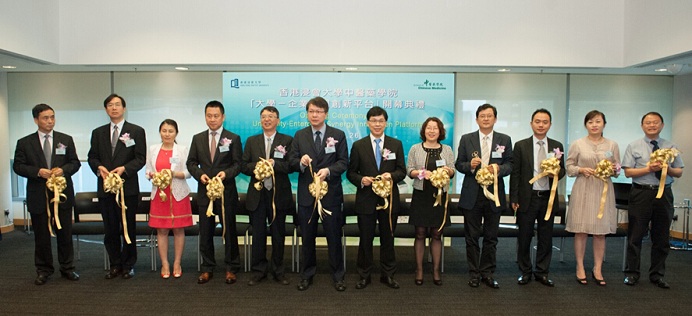 2015年5月26日,我司应邀参加了香港浸会大学中医药学院「大学-企业协同创新平台」开幕典礼。香港创新科技署助理署长郑智良先生,香港浸会大学署理校长黄伟国教授,香港浸会大学中医药学院院长吕爱平教授等以及数十家合作企业代表出席了开幕式。开幕式上,我司作为主礼嘉宾对公司的基本情况及与浸会大学项目合作做了简明的介绍。合作各方期望借助该协同创新平台,共同促进官、产、学、研更紧密的合作交流。