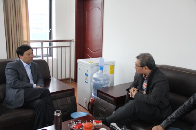 片仔癀化妆品公司副董事长兼总经理陈杰华先生向陈总编一行介绍公司情况