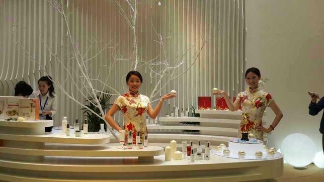 本次片仔癀化妆品展馆采取流动曲线美和圆形的设计,以淡淡的明黄色为整体色调,典雅、时尚、新颖的造型设计,将东方文化底蕴与现代时尚完美结合,充分体现了片仔癀化妆品的东方之美。走进展馆中,即可发现“祛黄”特色浓郁,片仔癀化妆品“祛黄”第一品牌的风范展现得淋漓尽致。