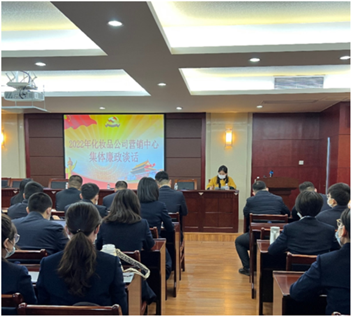 为进一步筑牢干部职工拒腐防变的思想根基,1月17日,片仔癀药业公司纪委(监察专员办)驻化妆品公司纪检监察室高级主管李云露对化妆品公司全体营销人员开展集体廉政谈话。李云露强调,近年来化妆品公司的经营业绩取得了高速增长,营销中心作为核心部门,在看到成绩的同时也要坚决贯彻廉洁从业有关要求。一是强化思想认识,提高政治素养;二是认真履职尽责,坚持严以用权;三是加强自身建设,提升履责能力。