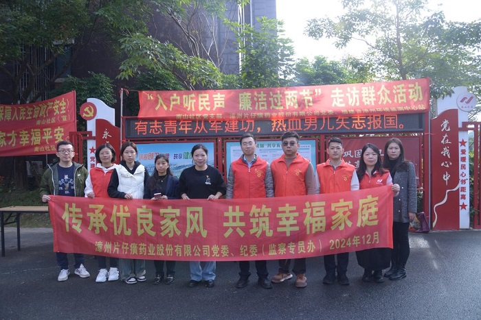 为加强反腐倡廉教育和廉政文化建设,以优良家风涵养清朗风气,12月26日,片仔癀公司联合南山社区党支部,共同开展“入户听民生 廉洁过两节”走访群众活动。