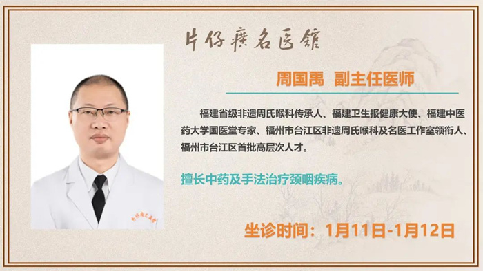 片仔癀名医馆丨1月6日—1月12日,全国36位名中医陆续到馆