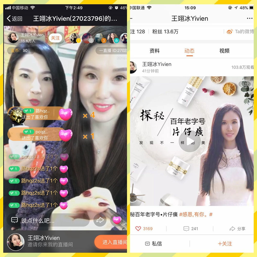 近两年来,片仔癀化妆品在网络上也备受消费者好评,不少知名美妆达人在使用产品后,对产品给予了高度评价,并推荐给粉丝使用。片仔癀化妆品也紧跟时代潮流,在本次全城联动活动现场首次试水网红直播。在国内最大时尚产业集团美空网的鼎立支持下,其特别派出了知名花椒网红“岛儿becky”和一直播网红“王翊冰Yivien”进行“探秘百年老字号•片仔癀”现场直播助阵。通过与公司产品研发总工程师陈丽娟女士、美导老师互动,走访厦门鼓浪屿片仔癀博物馆,为消费者解答护肤问题,推荐适合产品,介绍片仔癀500年品牌文化等,多维度提升品牌在消费者中的知名度与美誉度,进而为线下门店进行引流销售,解决当前线下渠道发展瓶颈。