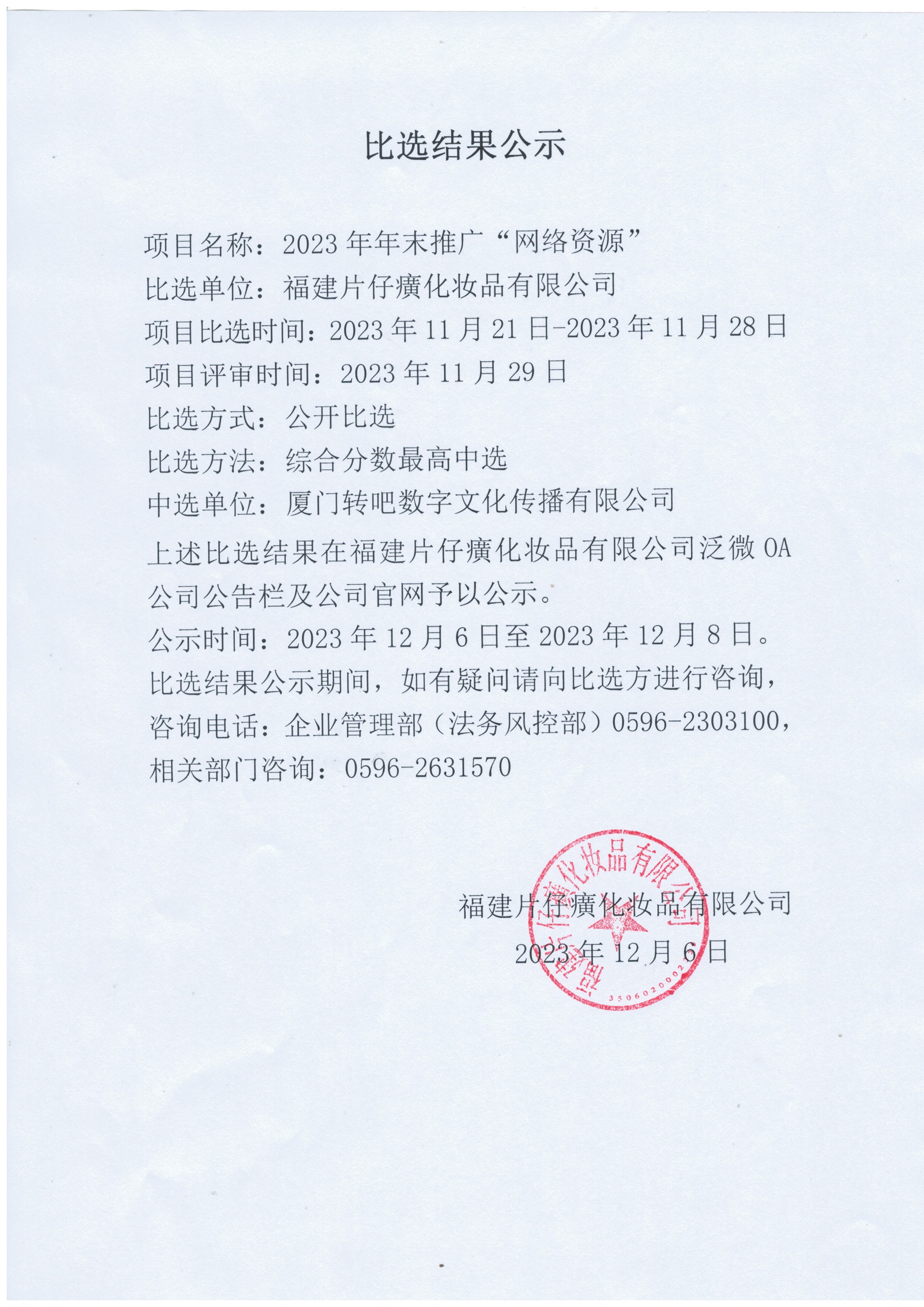 2023年年末推广“网络资源”比选结果公示
