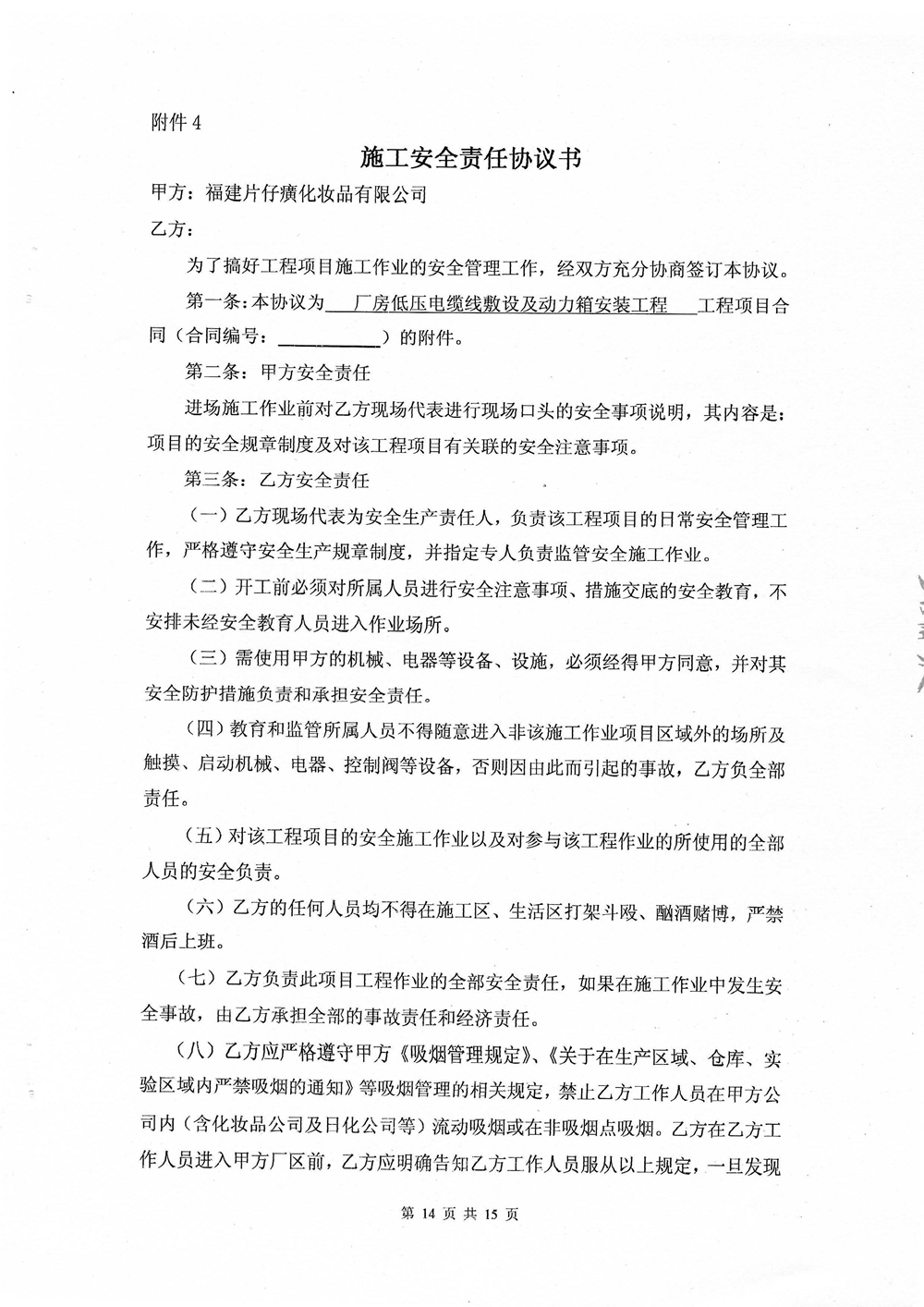 福建片仔癀化妆品有限公司厂房低压电缆线敷设及动力箱安装工程邀请招标文件