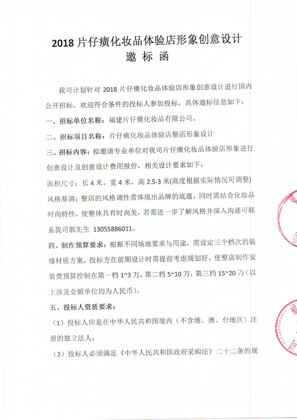 2018片仔癀化妆品体验店形象创意设计邀标函