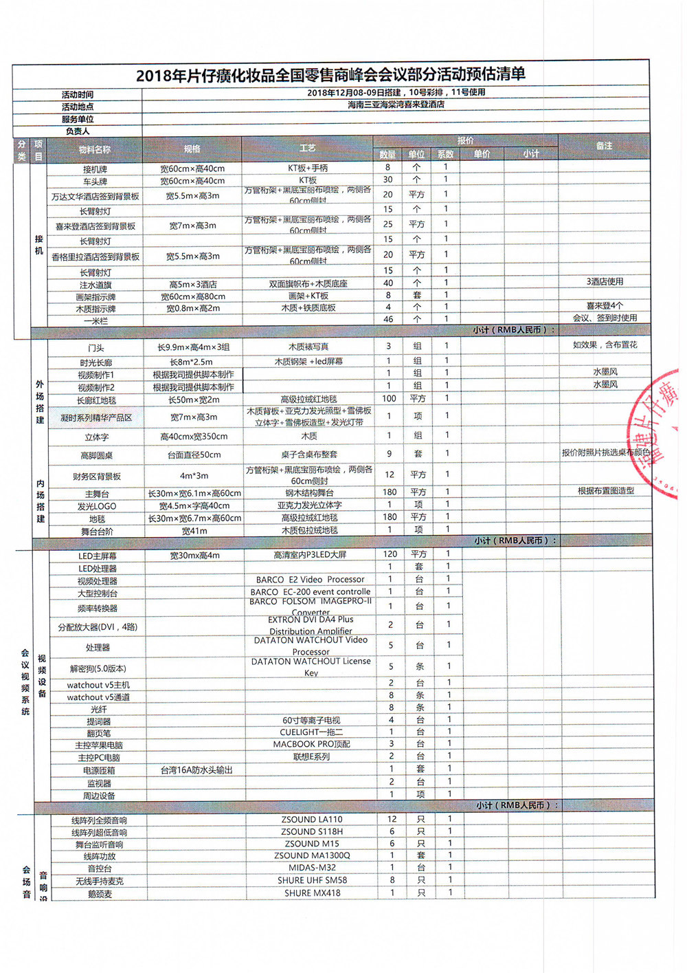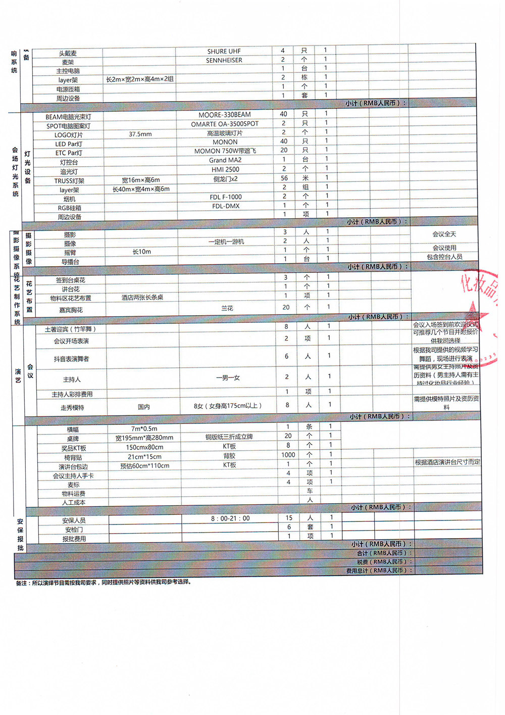 片仔癀化妆品2019年品牌战略发布暨2018全国零售商峰会会议布置公司招标函