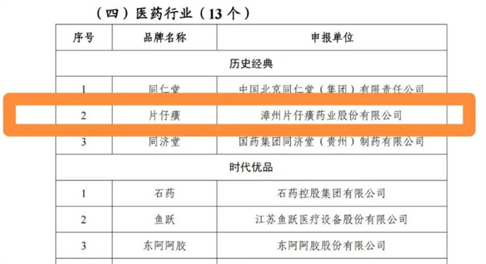 片仔癀品牌入选历史经典方向“中国消费品名品”