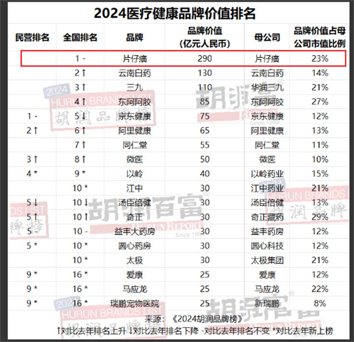 片仔癀品牌位居“胡润品牌榜医疗健康品牌价值榜”榜首