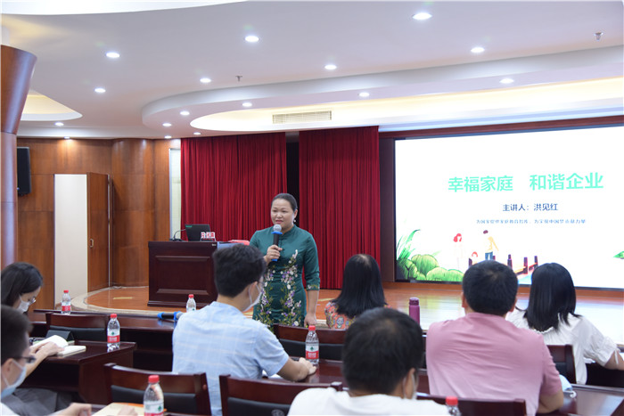 中秋佳节前夕,为传承和弘扬中华民族优秀传统文化,营造家庭幸福、企业和谐的浓厚节日氛围, 9月25日下午,漳州片仔癀药业股份有限公司开展了《幸福家庭,和谐企业》主题讲座活动,引导公司广大职工追求幸福美满的家庭生活。此次讲座是由漳州市总工会牵头主办的职工素质提升免费送教进基层项目,活动特邀木兰舍家文化传播有限公司创始人洪见红老师为广大职工授课。公司各部室、车间及子公司近80人参加活动。