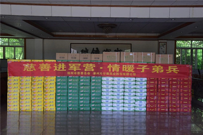 在“八一”建军节来临之际,2019年7月25日,由漳州市慈善总会、漳州片仔癀药业股份有限公司联合主办的“慈善进军营·情暖子弟兵”慈善拥军救助活动在福建某预备役后勤保障旅举行。市慈善总会会长游婉玲,市退役军人事务局副局长蔡建,漳州片仔癀药业股份有限公司党委副书记、工会主席洪东明及市慈善总会、片仔癀药业公司等相关单位人员参加活动。