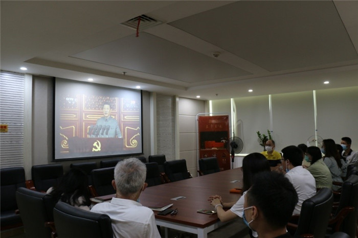 片仔癀上海家化口腔护理公司党员、干部集体收听收看庆祝中国共产党成立100周年大会直播。