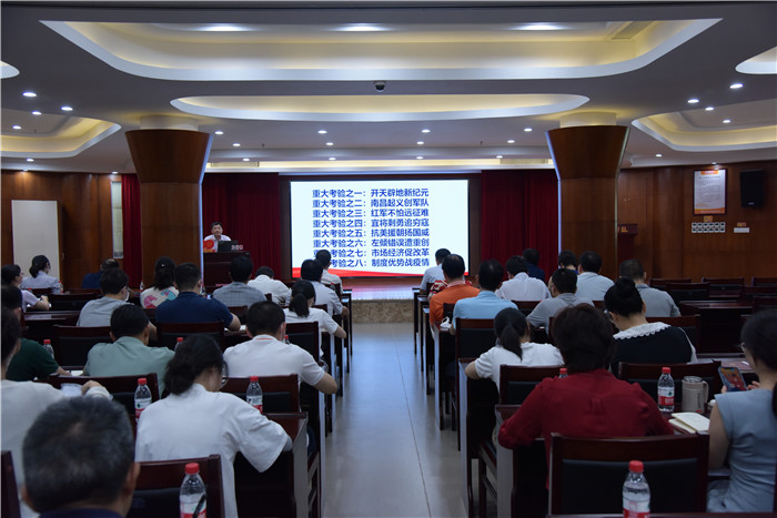 读书班邀请市委党校老师和市互联网新闻中心专家分四个专题进行授课。方赐德教授主讲《迈向中华民族伟大复兴的宣言书——深入学习贯彻“七一”重要讲话精神》、洪漳明副主任主讲《网络舆情导控实务》、陈贤滨副教授主讲《在新中国共产党百年史上的重大考验与启示》、张民胜副教授主讲的《学党章、知党章、尊党章》。