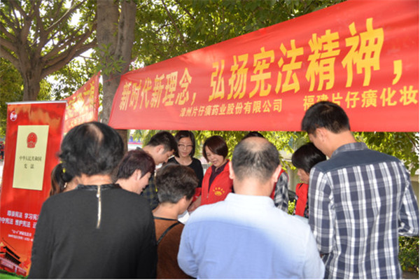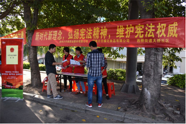 12月4日是全国第五个国家宪法日,漳州片仔癀药业股份有限公司联合福建片仔癀化妆品有限公司、大桥社区及共建单位走上街头,开展“新时代新理念,弘扬宪法精神,维护宪法权威”志愿宣传活动。